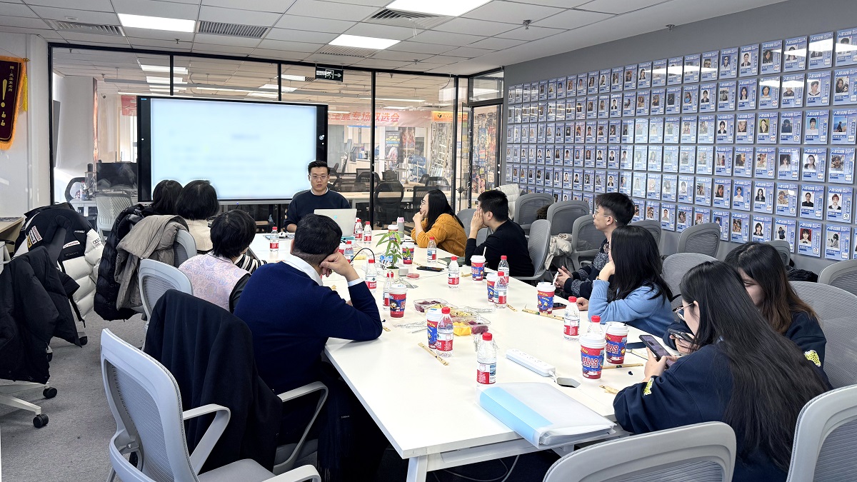 下午,天津商大专家团前往天空盒北京国贸总部校区参观,赫士聪就“美术设计学专业产学研就业拓展”进行专题汇报。